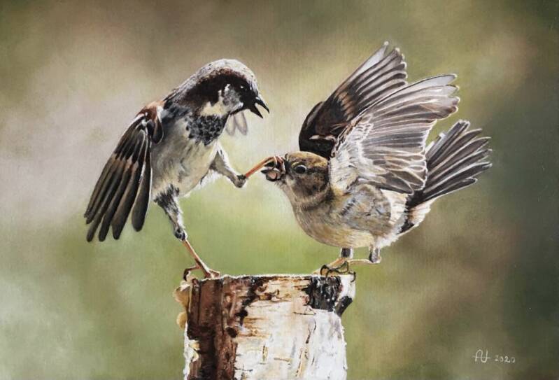 Wil Tiemes | Individueel schilderen | Masterclass | Workshops| Kraanvogel Olieverf op paneel 30x40 cm